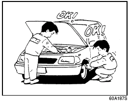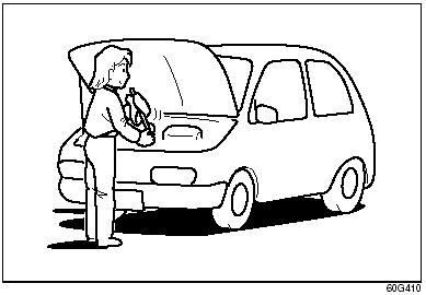 • When it is necessary to do service work with the engine running, make sure that the parking brake is set fully and the transaxle is in Neutral (for manual transaxle vehicles) or Park (for automatic transaxle vehicles).