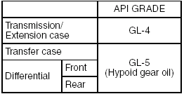 When replacing gear oil, use gear oil with the appropriate viscosity and grade as shown in the charts below. We highly recommend you use SAE 75W-90 gear oil (SAE 80W-90 for front differential oil, rear differential oil and transfer gear oil).
