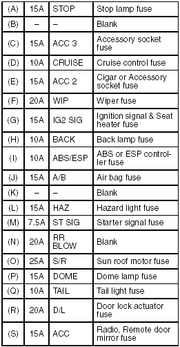 The main fuse, primary fuses and some of the individual fuses are located in the engine compartment. If the main fuse blows, no electrical component will function.